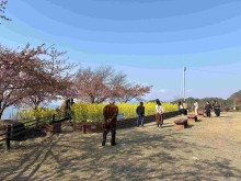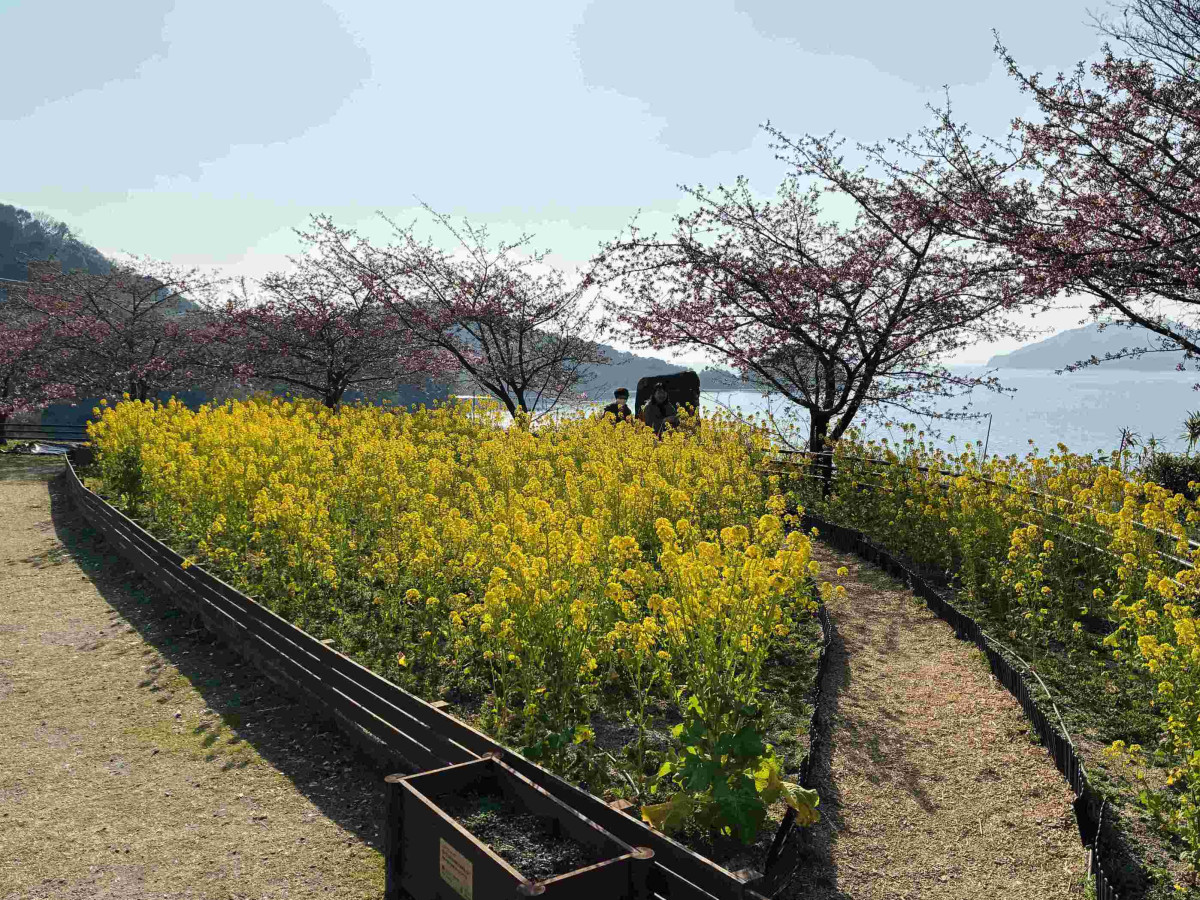 下松市笠戸島の県道沿いにある広場「潮風ガーデン」の河津桜と菜の花