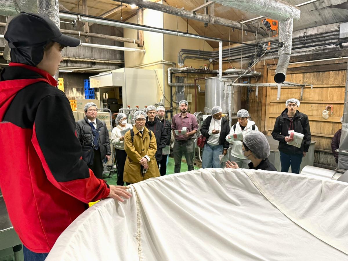 山口県内に在住する外国語指導助手(ALT)など外国人を対象とした「酒蔵見学&茶道体験ツアー」が3月7日、周南市内で行われた。