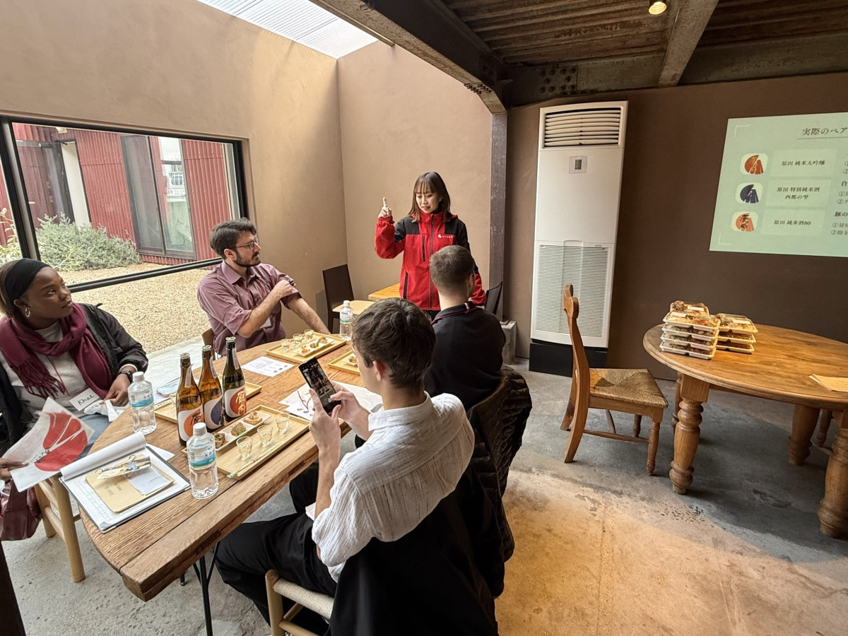日本酒のペアリング体験で味の違いを確かめる参加者