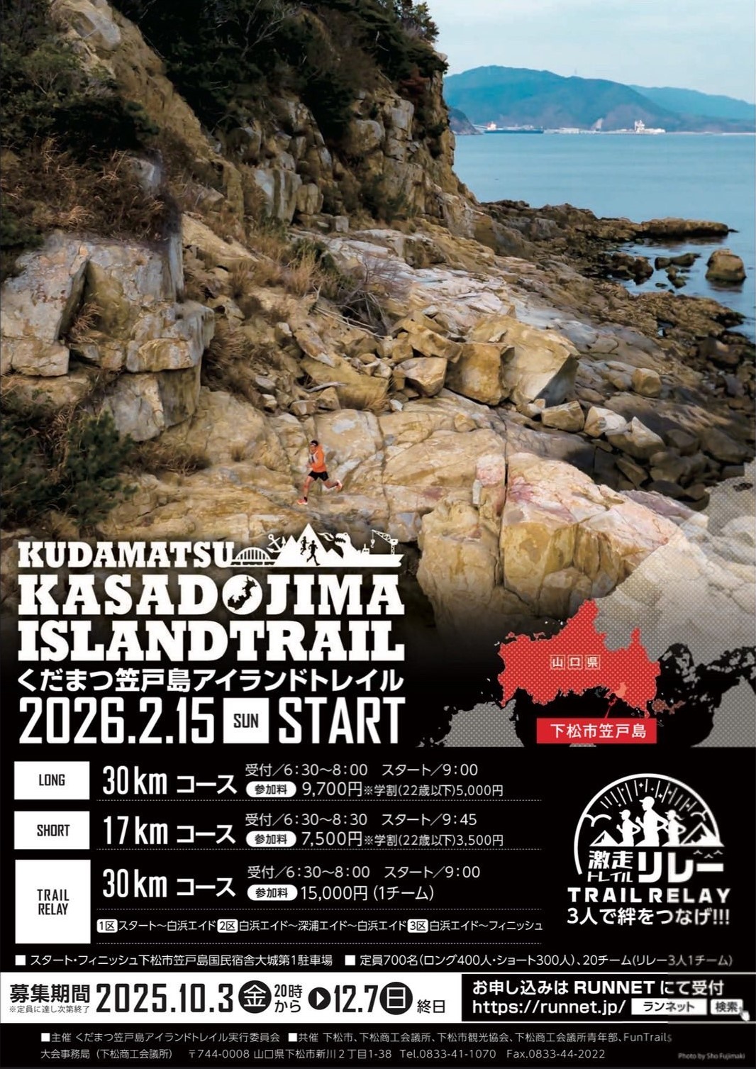 「くだまつ笠戸島アイランドトレイル2026」が来年2月15日、下松市の笠戸島で行われる。