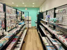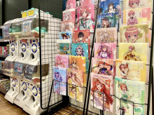 ホビーショップの床面積は約71平方メートル。アニメやゲームのキャラクターのフィギュア、アクリルスタンド、キーホルダー、クリアファイルなどの商品が並ぶ。