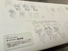 会場では、「やなせたかし大解剖」「漫画」「詩」「絵本/やなせメルヘン」「アンパンマン」のテーマ別に展示。「てのひらを太陽に」「やさしいライオン」「アンパンマン」「絶望のとなりに」などの作品・原画、やなせさん着用の洋服や愛用の画材、「アンパンマンのマーチ」原稿、やなせさんが英文字レタリングを担当した百貨店「三越」のショッパー原画などが並ぶ。