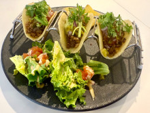 提供するタコスは、自家製トルティーヤ生地に、ホロホロになるまで煮込んでほぐした肉と、ワカモレやサルサソース、野菜を合わせる。初めてタコスを食べる人でも食べやすい味に仕上げたという。メニューは、カルニタスタコスセット、スアデロタコスセット、チョリソータコスセット(以上、1,100円)、自家製トルティーヤ(650円)、カルニタスサラダ、フライドポテト(以上、600円)など。