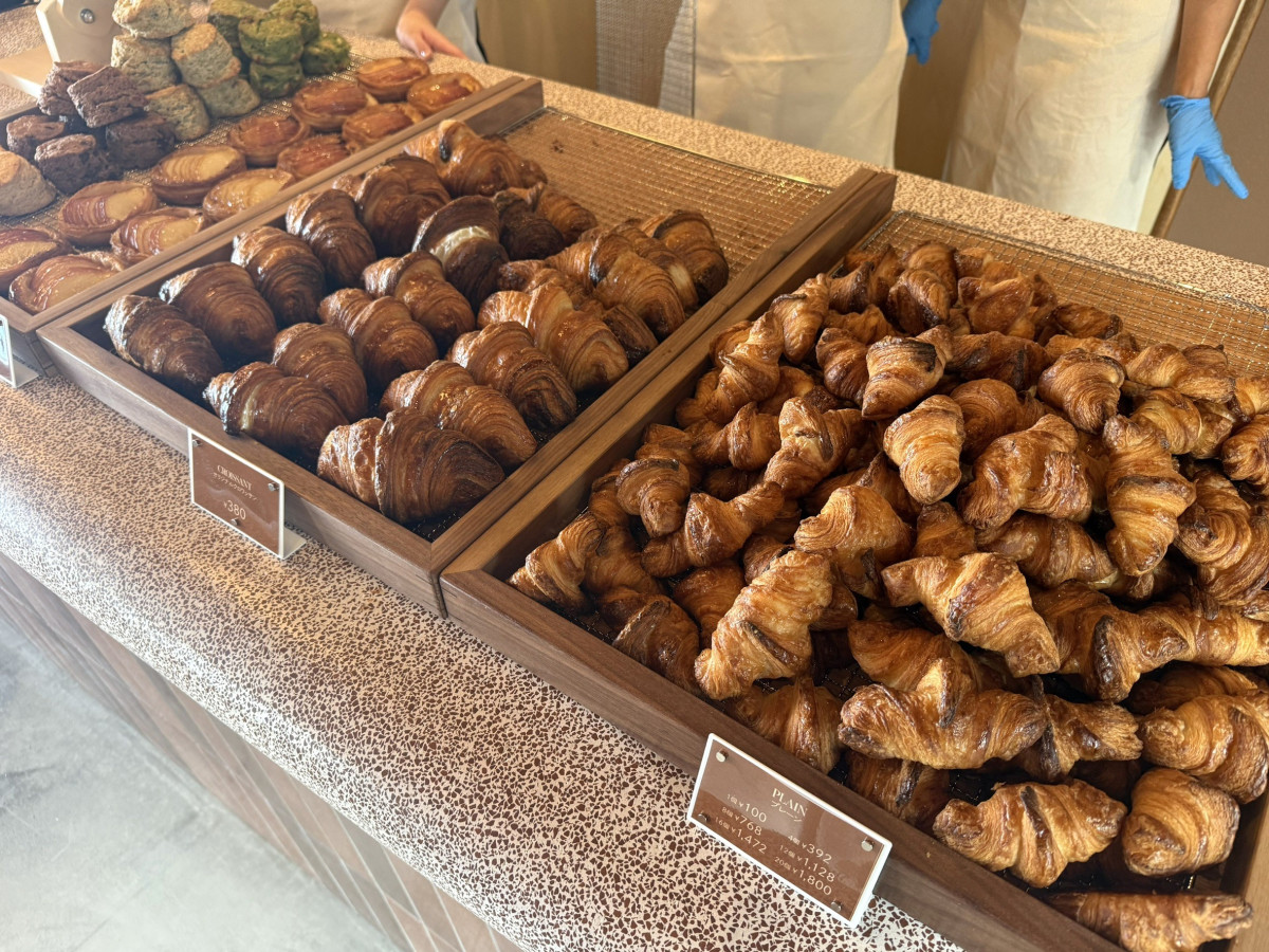 カフェカウンターでクロワッサンやアップルパイなどのパンを販売するベーカリーカフェ「YUNAGI Cafe」