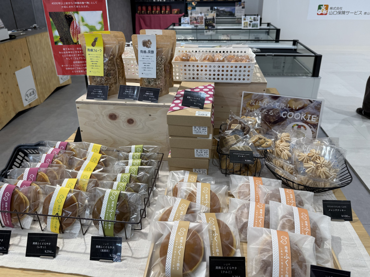 徳山デッキにオープンしたアンテナショップ「ちほ活」の店内に並ぶ地元事業者の商品