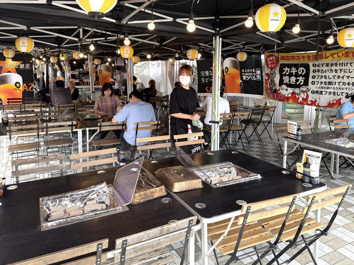 出張カキ小屋「牡蠣(かき)奉行」が現在、サンリブ下松(下松市南花町6)正面玄関前に期間限定で出店している。