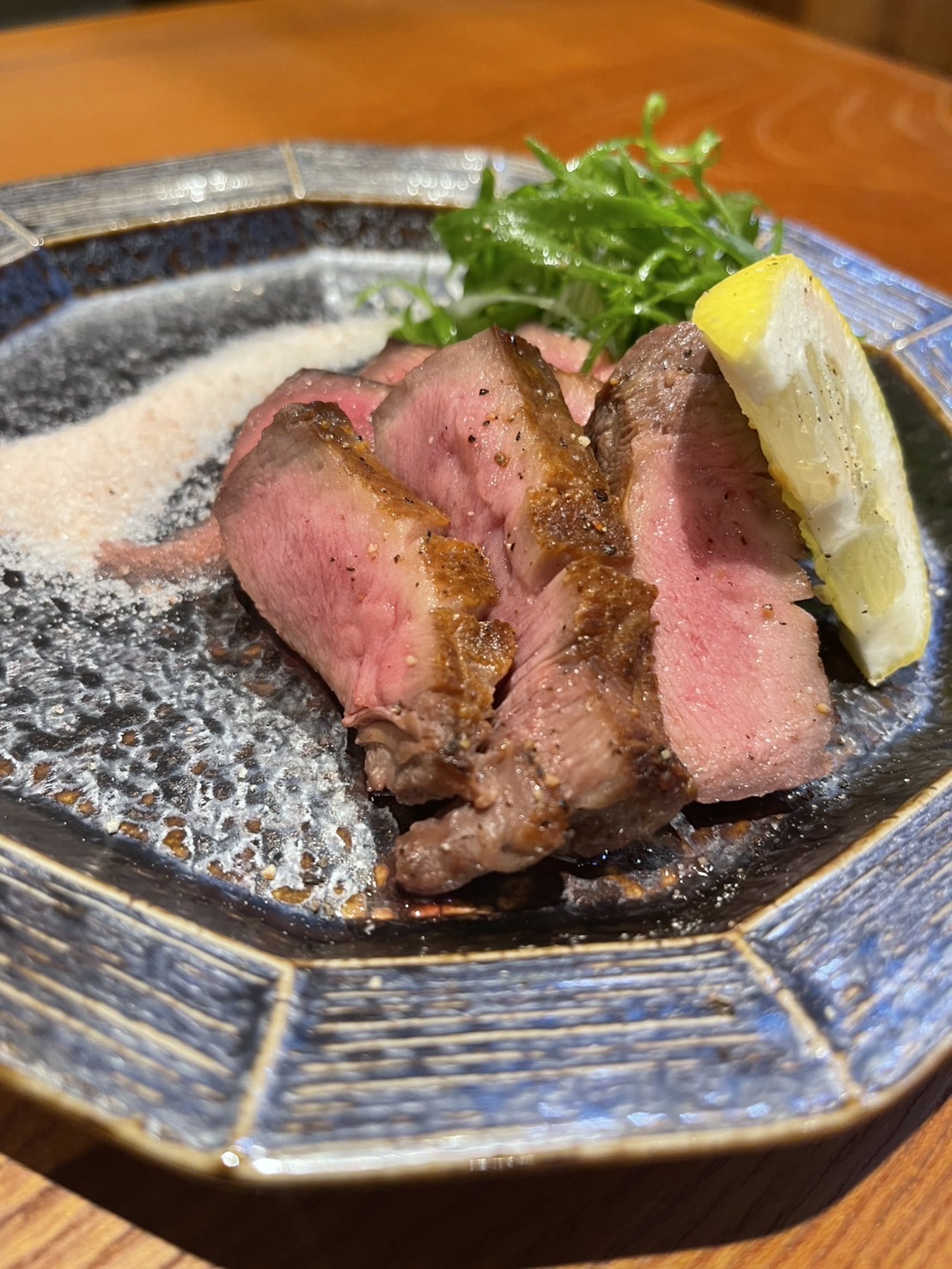 周南・中央街の炭焼きビストロ「たまには。」で提供する厚切り牛タン(写真提供=たまには。)