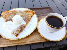 周南・栗屋のベーカリーカフェ「YUNAGI Cafe」で提供するクレープとコーヒー