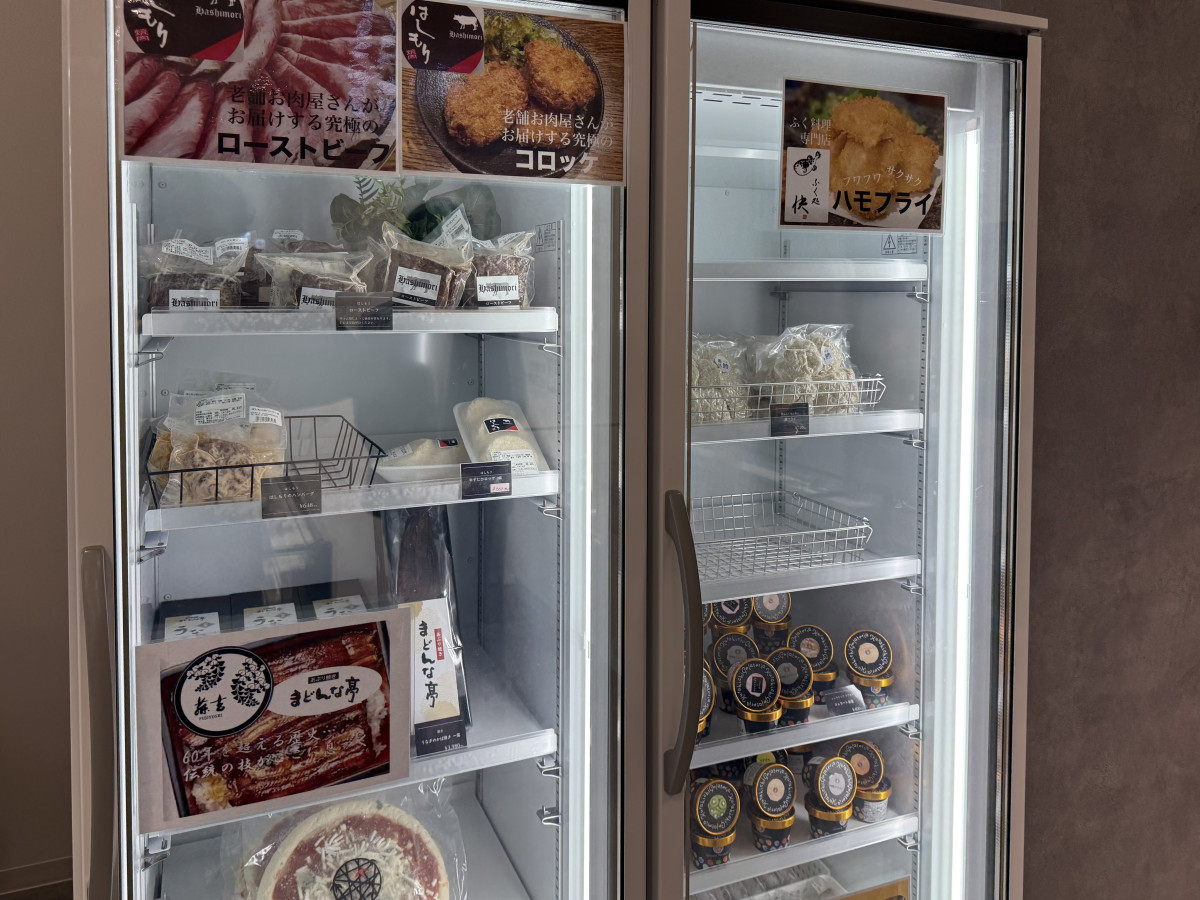 アンテナショップ「ちほ活」の冷凍ショーケースに並ぶ惣菜