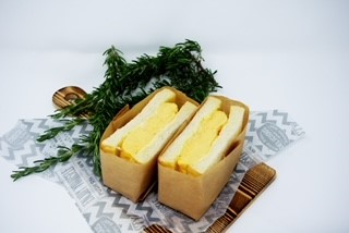下松市のイベント「くだまるサンタがやってくる!」の駅前うまいもん市に出店するキッチンアリスのだし巻き卵サンド(写真提供=下松市観光協会)
