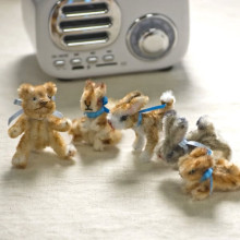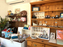田布施のカヌレと雑貨を扱う店「ツバメ舎」のモール人形やイラスト、布小物が並ぶ店内