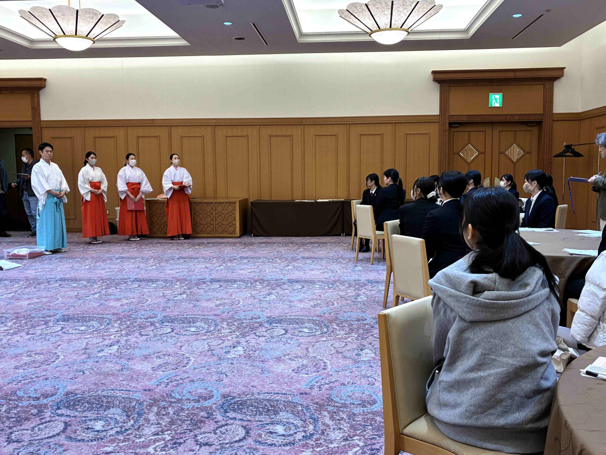 遠石八幡宮(周南市遠石)で12月25日、初詣客を迎える巫女(みこ)の研修会が行われた。