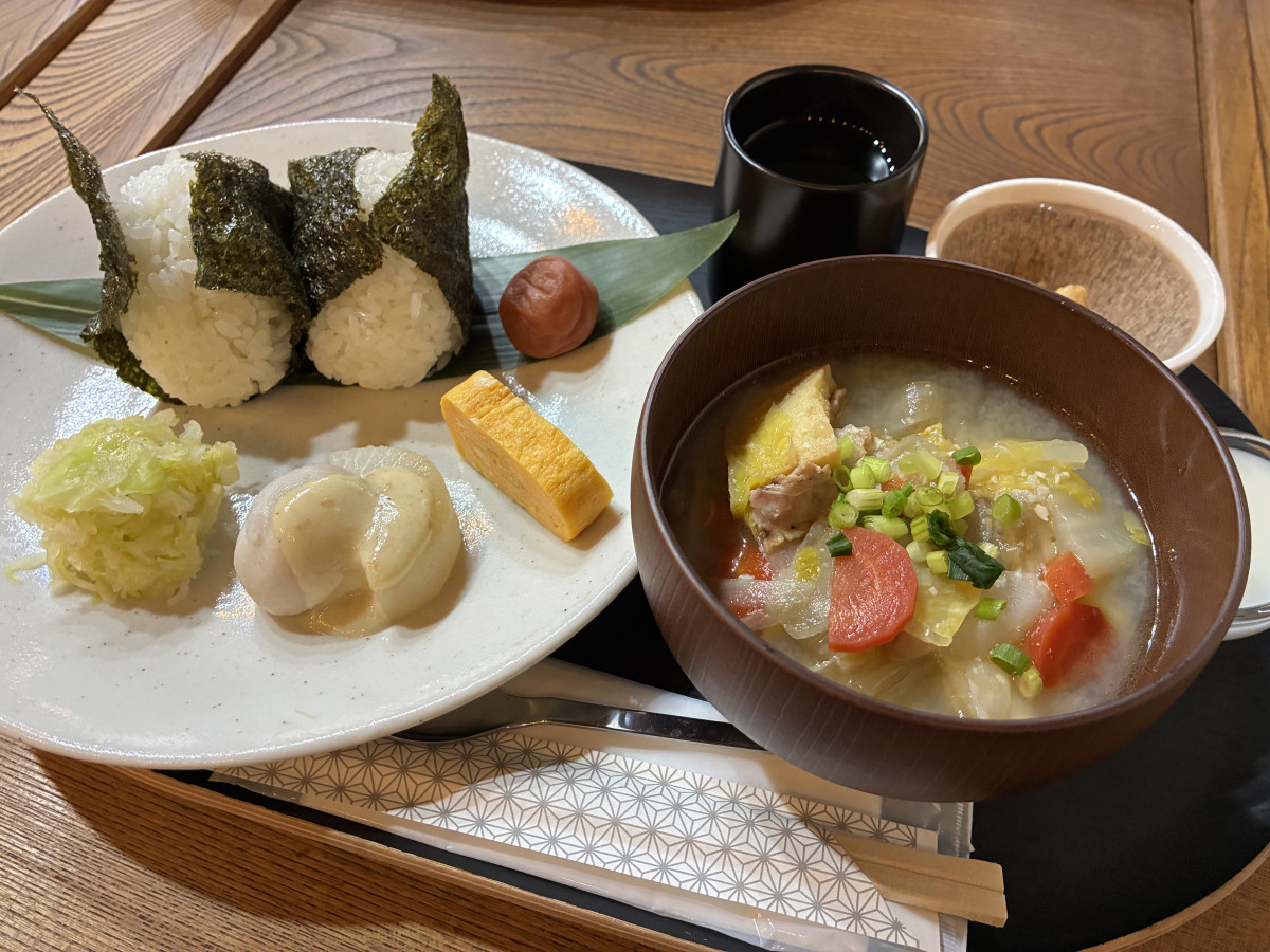 光市の古民家カフェ「結堂ミキカフェ」で提供する「おむすびセット」