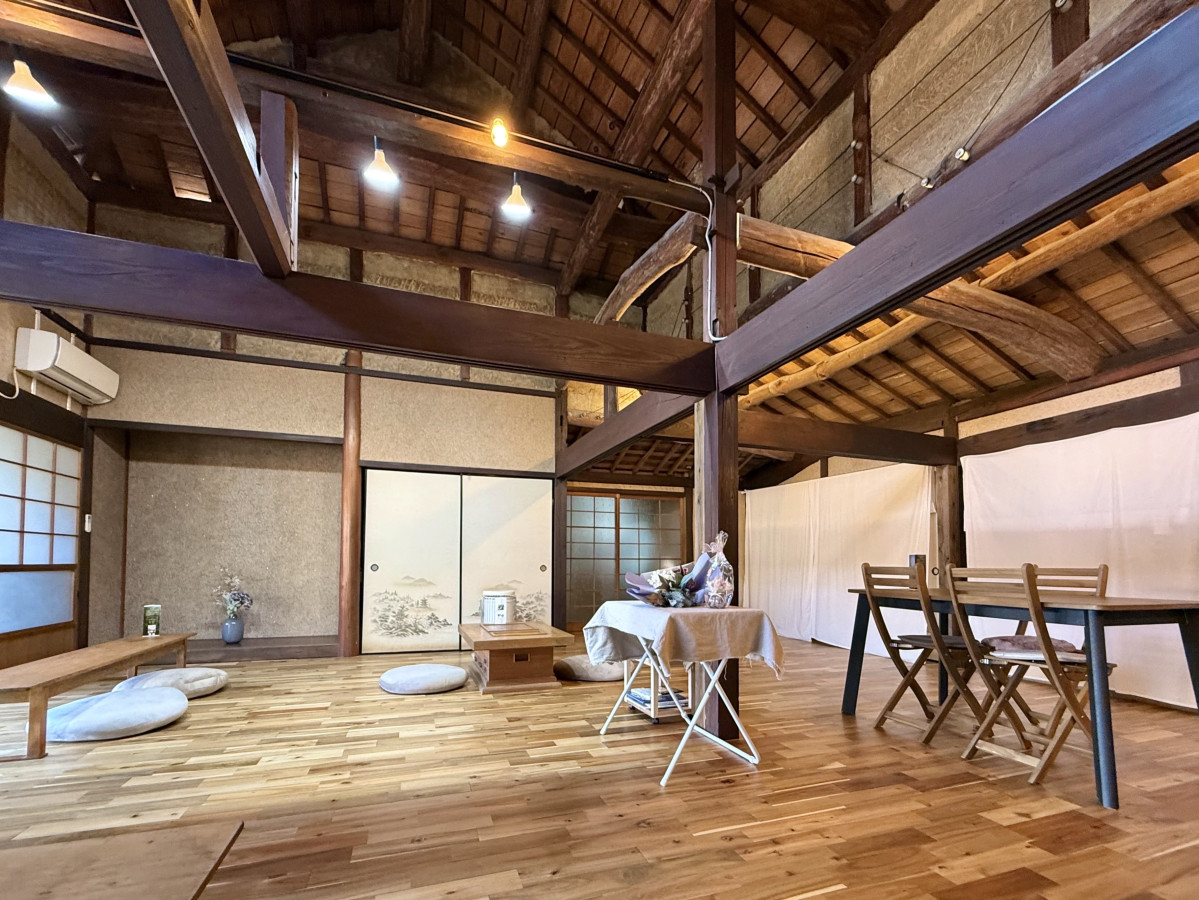 光市にオープンした築約80年の古民家カフェ「結堂ミキカフェ」の開放的な店内