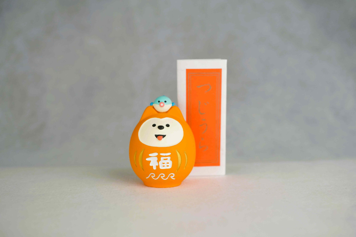 雑貨店「NOICHI(ノイチ)」(周南市銀座1)が1月1日、雑貨シリーズ「concombre(コンコンブル)」とコラボレーションした縁起物商品「福猫だるま」「福柴だるま」の販売を始めた。