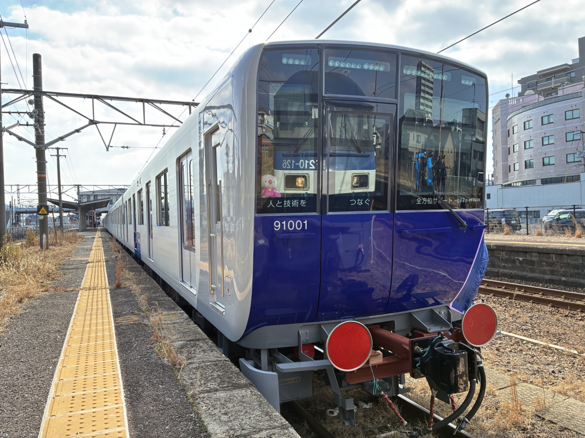 東武鉄道の新型車両「90000系」が2月3日、製造拠点の日立製作所笠戸事業所近くの下松駅(山口県下松市駅南1)から、甲種輸送で関東方面へ向け出発した。