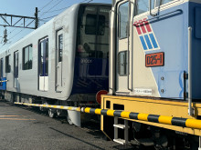 東武鉄道の新型車両「90000系」が2月3日、製造拠点の日立製作所笠戸事業所近くの下松駅(山口県下松市駅南1)から、甲種輸送で関東方面へ向け出発した。