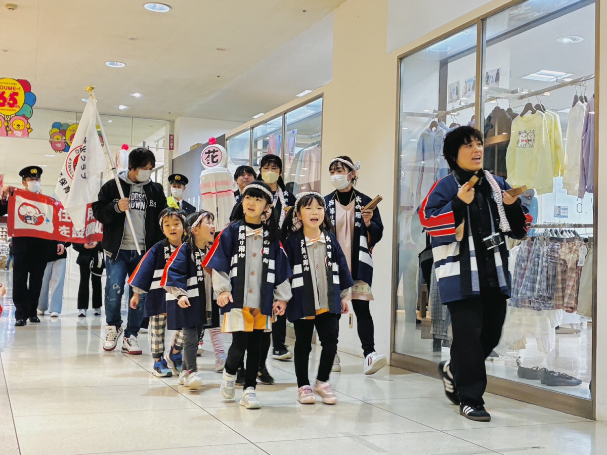下松市消防本部がゆめタウン下松で行った「防火パレード」の様子