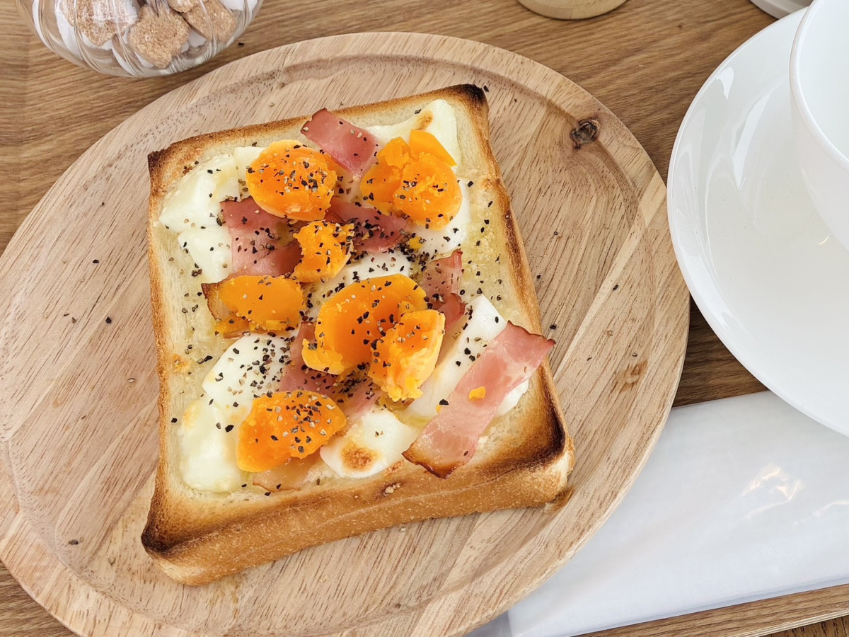 周南市・PH通り沿いのカフェ「お菓子の森」で提供するカルボナーラトースト