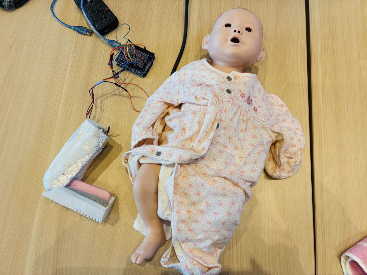 周公大看護学科の実習で使う乳幼児モデル人形の内部に組み込む動作機構