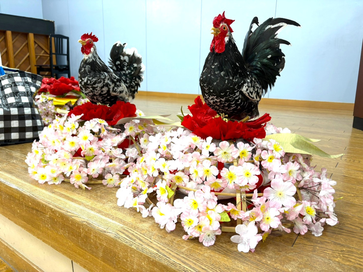 勝間諫鼓踊で音頭鶏(どうとり)が被る花笠