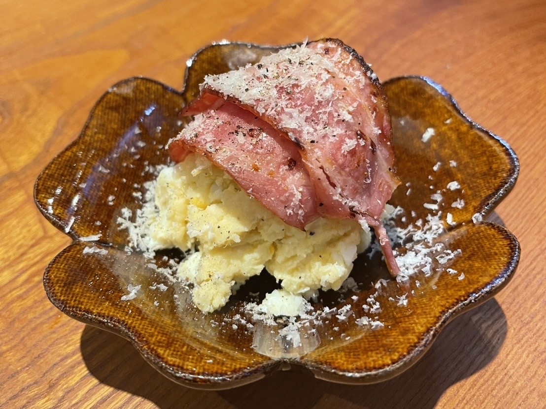 周南・中央街の炭焼きビストロ「たまには。」で提供する「たまには。ポテサラ」(写真提供=たまには。)