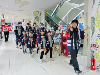 下松市消防本部がゆめタウン下松で行った「防火パレード」の様子